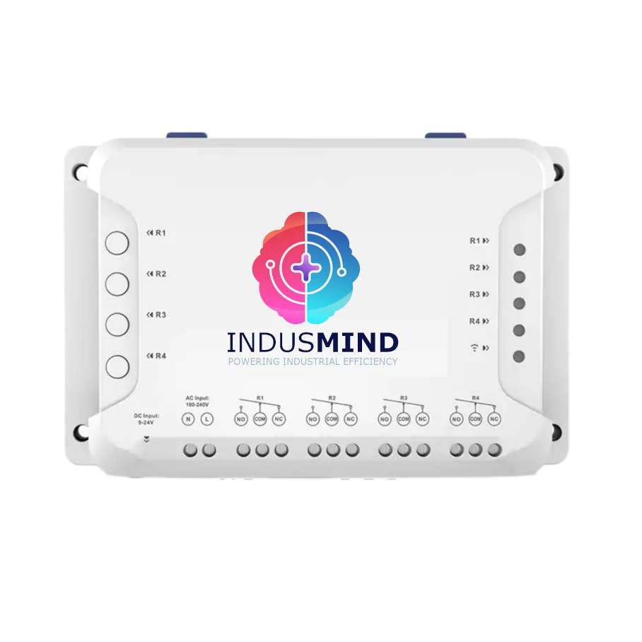 O4 Controller comes with a built-in Wi-Fi connection and 4 channel controls allowing to drive external peripherals such as HVAC systems, Lighting, pumps, air extrators, ... Network communication within the factory ensures fast, reliable and secure transmission of device controls.